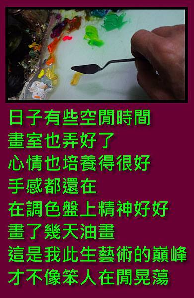 歡迎光臨!我是A-di,我在這裡開一家畫廊,這是40年前的夢想,我現在老了,做這事很適當,一面作畫,一面賣畫,再與人聊聊天,或自說自話,自得其樂也。